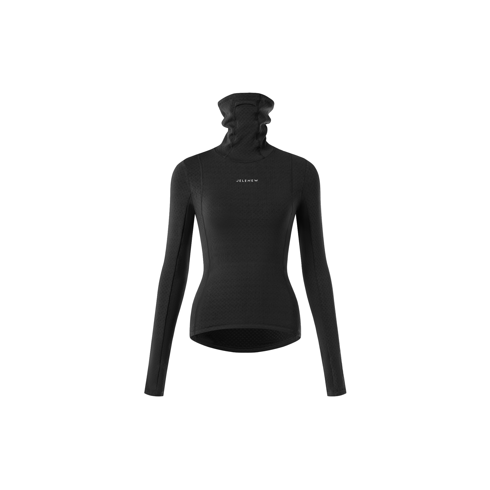 Designed for autumn and winter rides: a high stand-up collar doubles as a mask with a nose opening to prevent fogging, a back collar slit fits ponytails, and the mesh fleece fabric delivers warmth with flexible stretch.